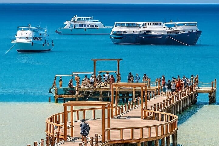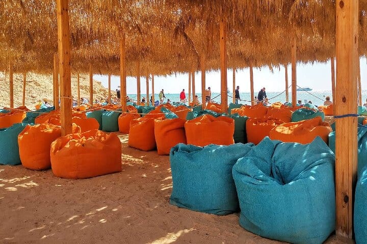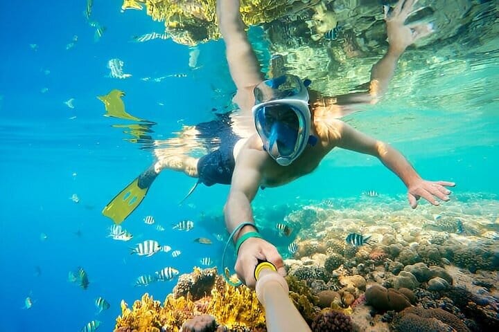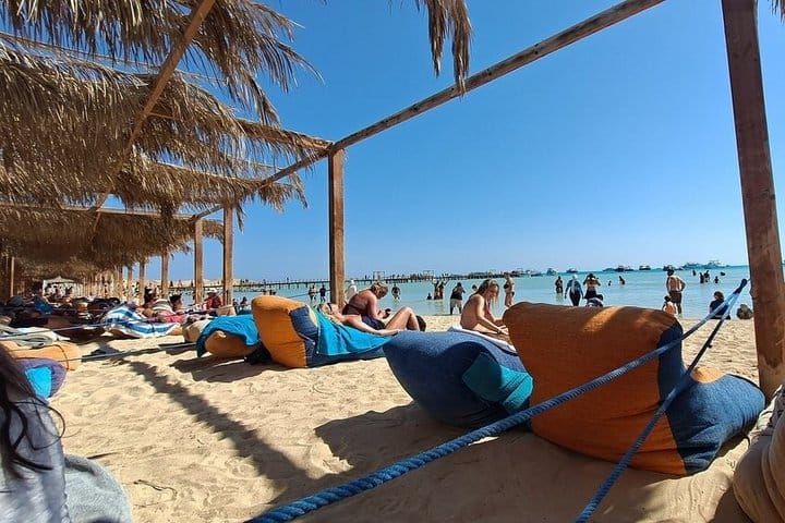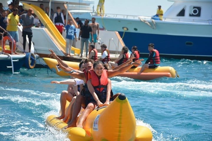 • Two Guided Snorkeling Stops where you will discover Hurghada’s hidden underwater world, your guides will lead you to the best coral gardens teeming with colorful fish.